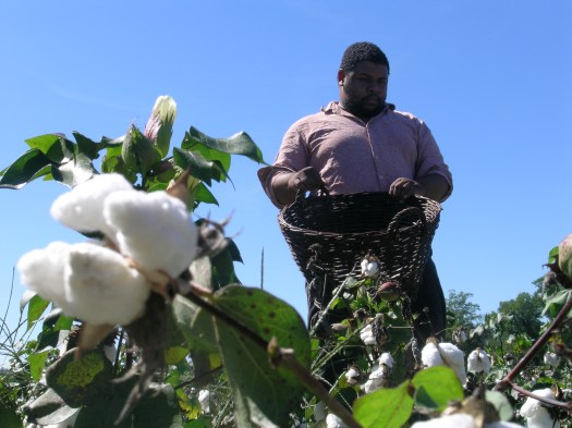Cotton is an extremely beautiful crop in the Southern fields….it is heartbreakingly beautiful…soft, inviting, miraculous.  Out an almost alien like green shell pops out a clear and delicate whiteness that soon envelops the boll’s space until the green turns to a brown husk.  The field turns a blinding white–the whiteness of the link is set afire and gleams wih the sunlight until you can’t see anything else. It is repetiive, painful, and makes your back ache.  Doing this alone you can understand why field hollers, the blues, and all of that music—was created to endure this mechanical, backbreaking process.   And until you’ve picked cotton–you have no idea how a hoecake “should,” taste, or how far we’ve come….